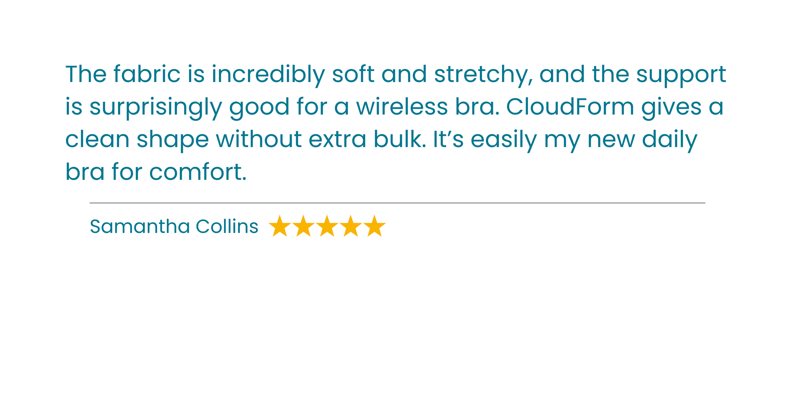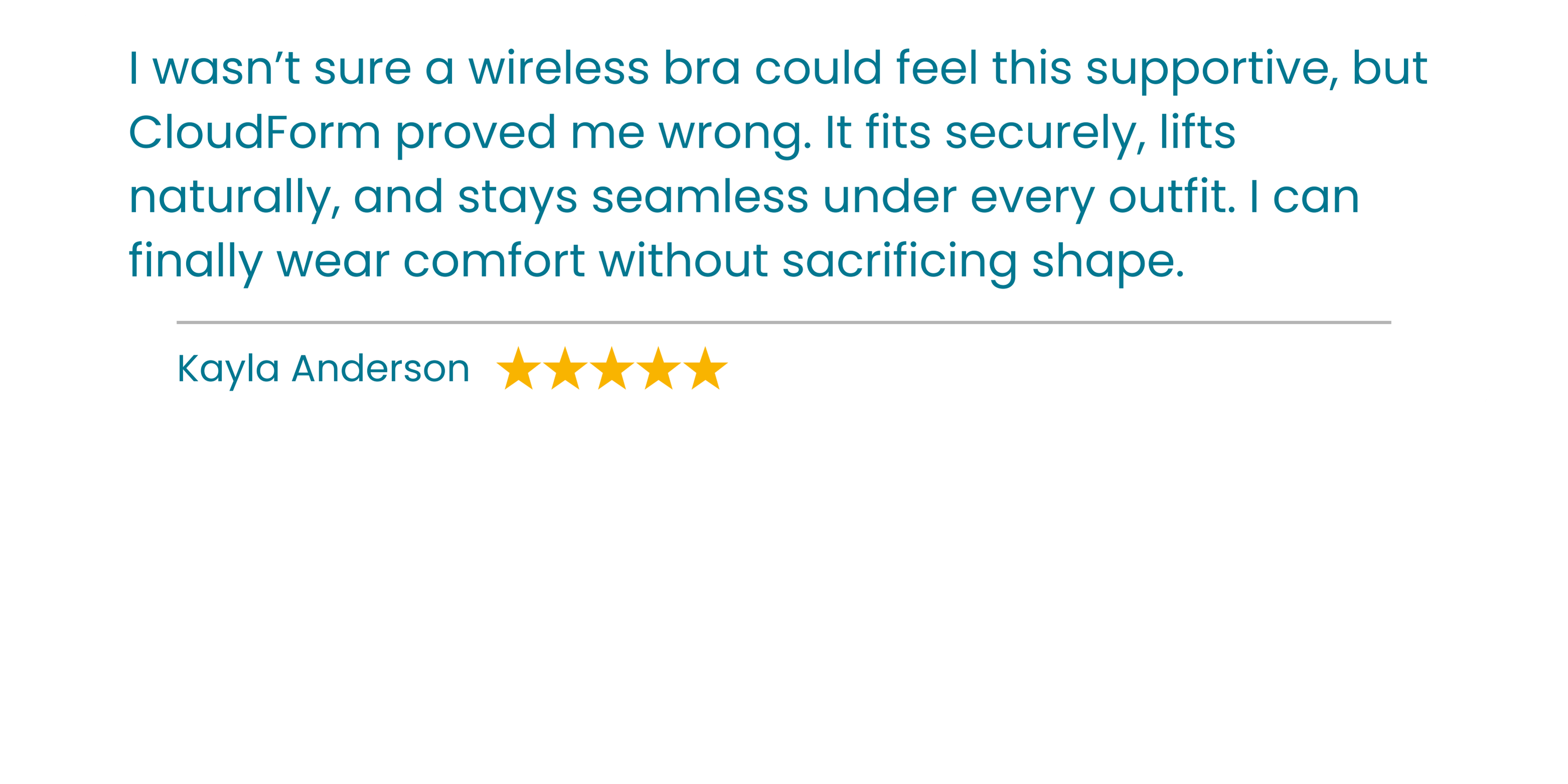 CloudForm™ is perfect for women who want wireless comfort, smooth shaping, and everyday support without sacrificing style or fit. If you’re tired of uncomfortable bras and constant adjusting, CloudForm™ is made for you.