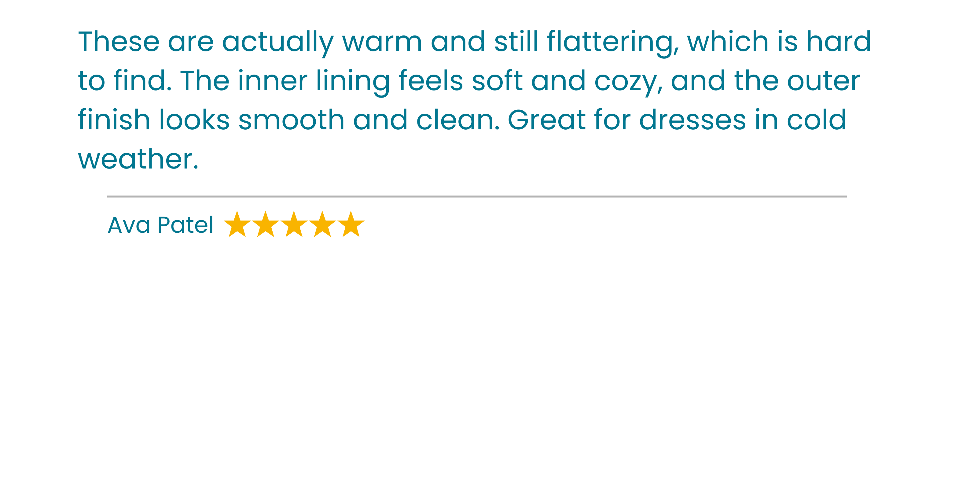 Women choose ShapeFit™ for its flawless sheer-leg illusion, cozy full coverage, and flexible stretch fit. The dual-layer design delivers warmth, smooth shaping, and effortless elegance so you enjoy confident style all day without discomfort or constant adjustments.